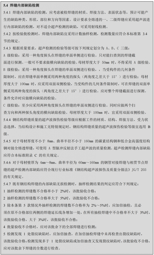 在鋼結構工程質量檢測中,超聲波檢測是評估焊接接頭內部缺陷的主要方法。檢測人員需依據相應標準對發現的缺陷進行等級評級,再對照驗收標準判斷缺陷等級是否超標。